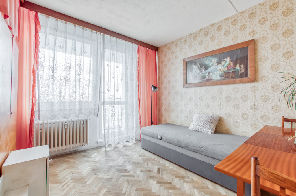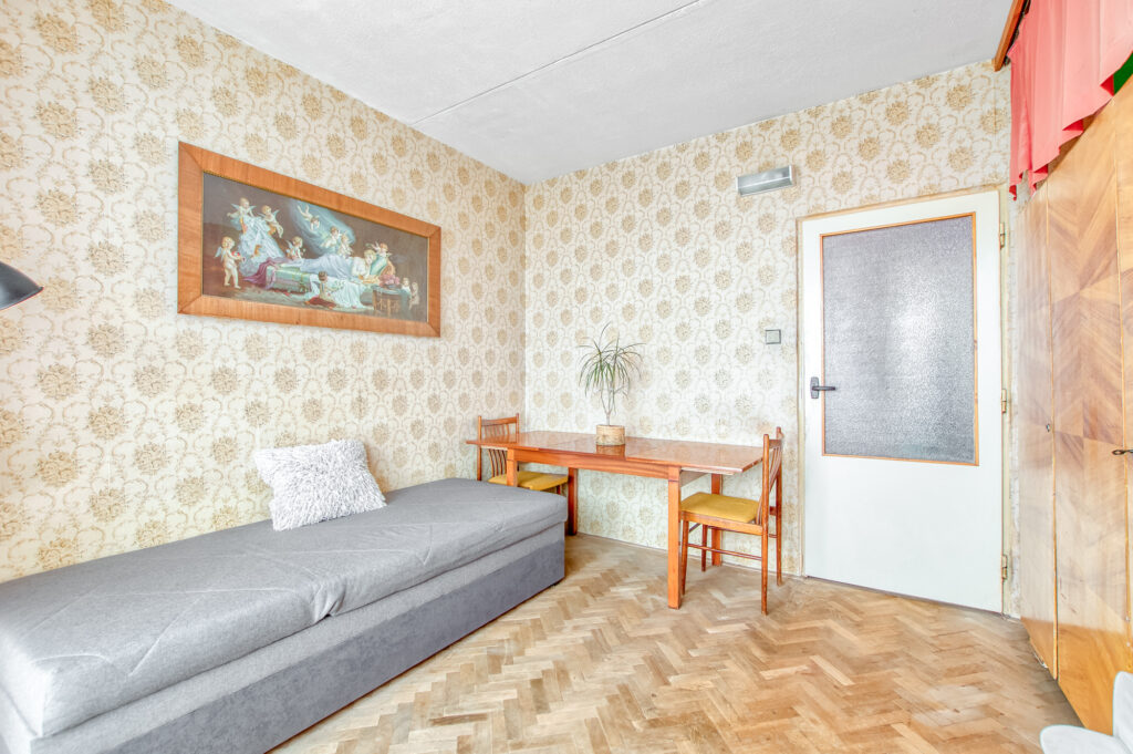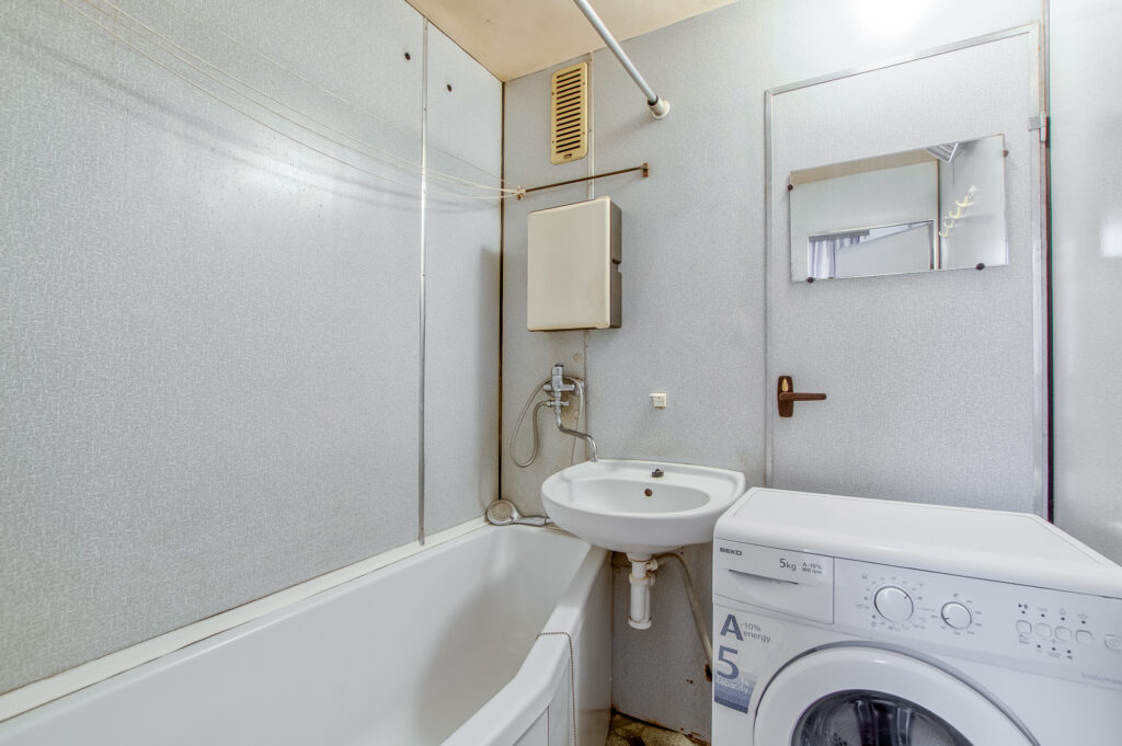 Byt je v původním stavu, takže všechno si můžete udělat podle sebe. Jádro je ještě umakartové, ale dobře udržované. V koupelně je vana, toaleta je zvlášť. Dispozice dává smysl už teď, ale pokud se pustíte do rekonstrukce, máte čisté plátno a volnou ruku.