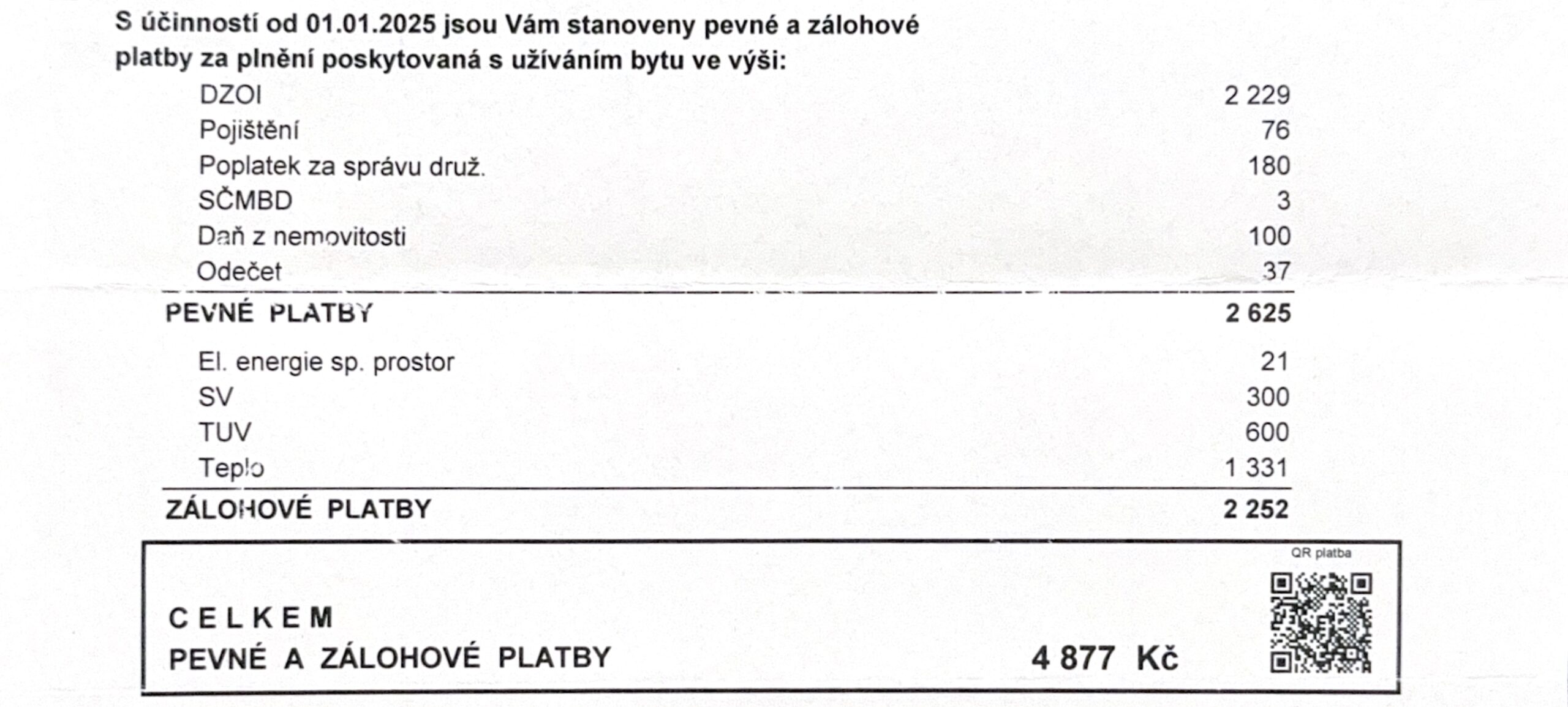 Měsíční poplatek bytovému družstvu činí 2 625 Kč (bez záloh na energie a služby). Energetická náročnost budovy je klasifikována jako třída C.