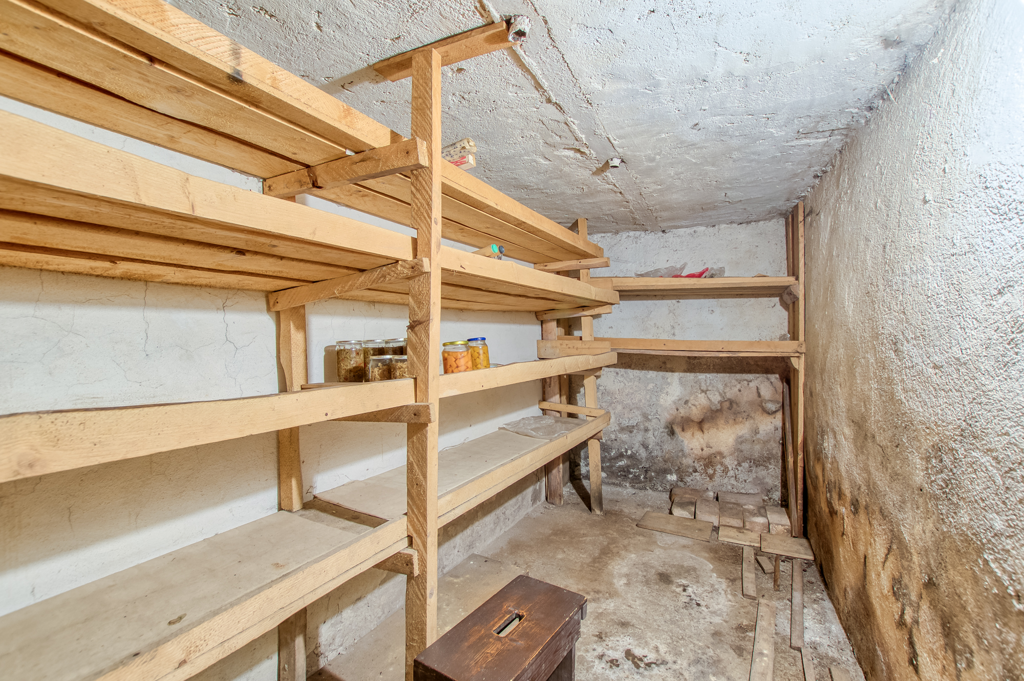 Dům má hned čtyři sklepy, které jsou odvodněné a připravené na praktické využití. Ať už plánujete skladovat brambory, jablka nebo třeba víno, místo tu rozhodně najdete. O vytápění se stará kotel na dřevoplyn značky Verner z roku 1996, který dům stále spolehlivě vytopí.