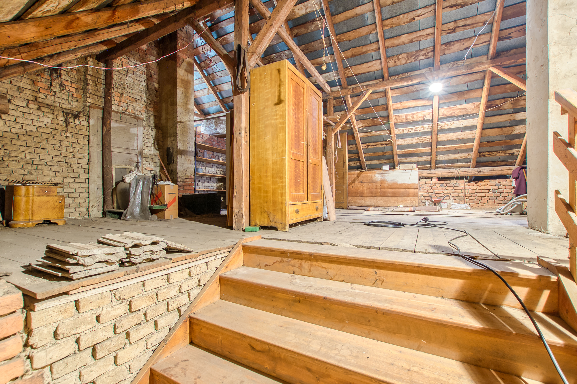 Po prostorných dřevěných schodech se dostanete na rozsáhlou půdu, která přímo vybízí k vybudování dalších obytných místností. A pokud ji zatím neplánujete přestavovat, skvěle poslouží jako velkorysý úložný prostor.