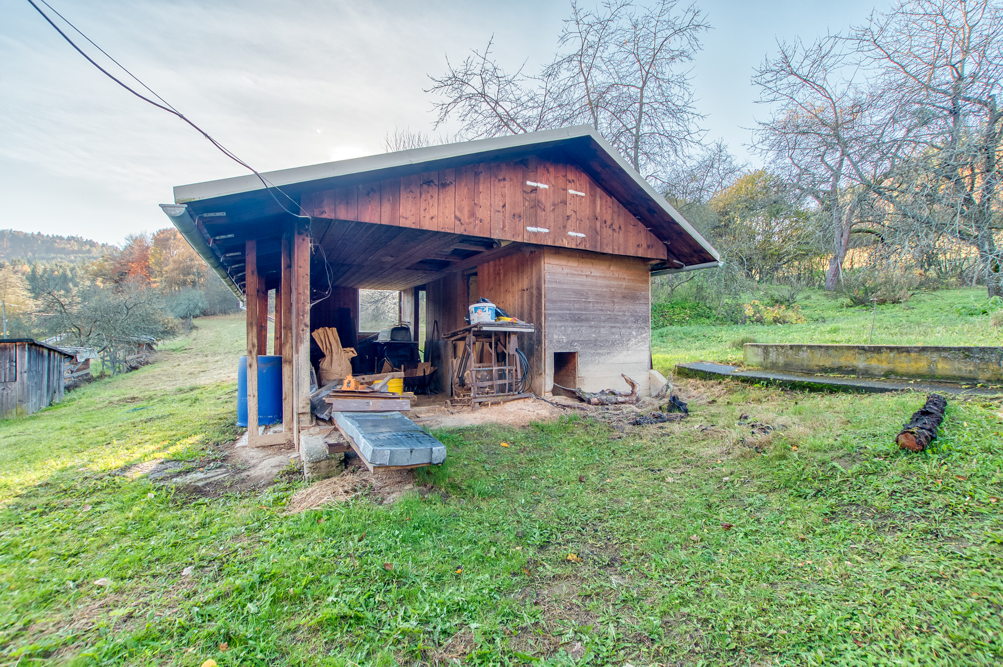 Mimo jiné na pozemku najdete i parádní dřevník. Ideální nejen na zásobu dřeva, ale klidně i jako sklad nářadí, zahradního vybavení nebo třeba malou venkovní dílnu. Místa je tu zkrátka dost.