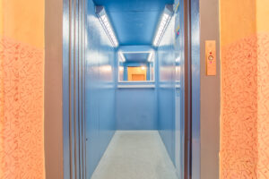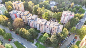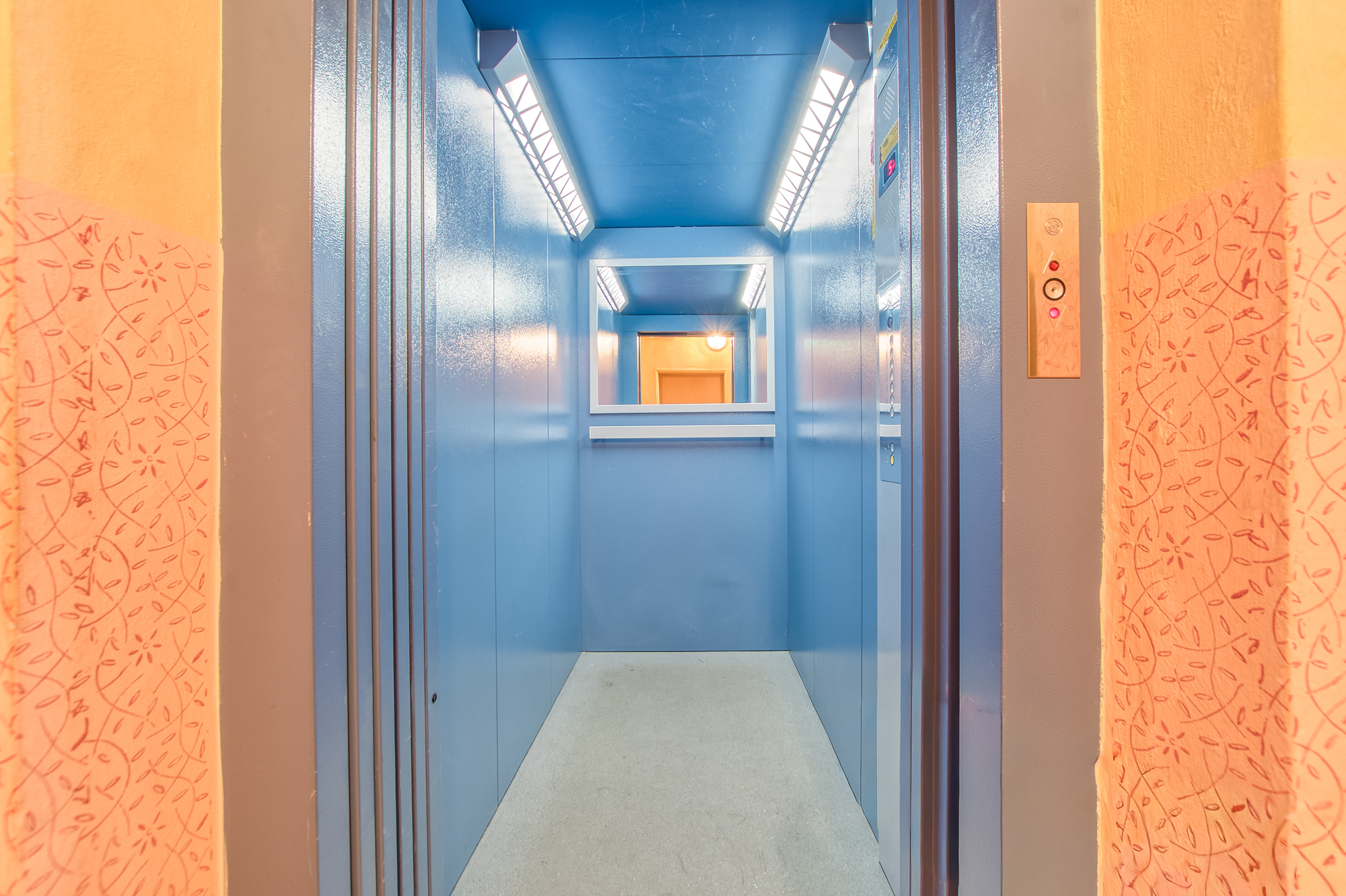 Byt má výměru 40 m2. Do pátého patra vede prostorný výtah a následně se pokračuje krátkým schodištěm do šestého podlaží kde se byt nachází.
