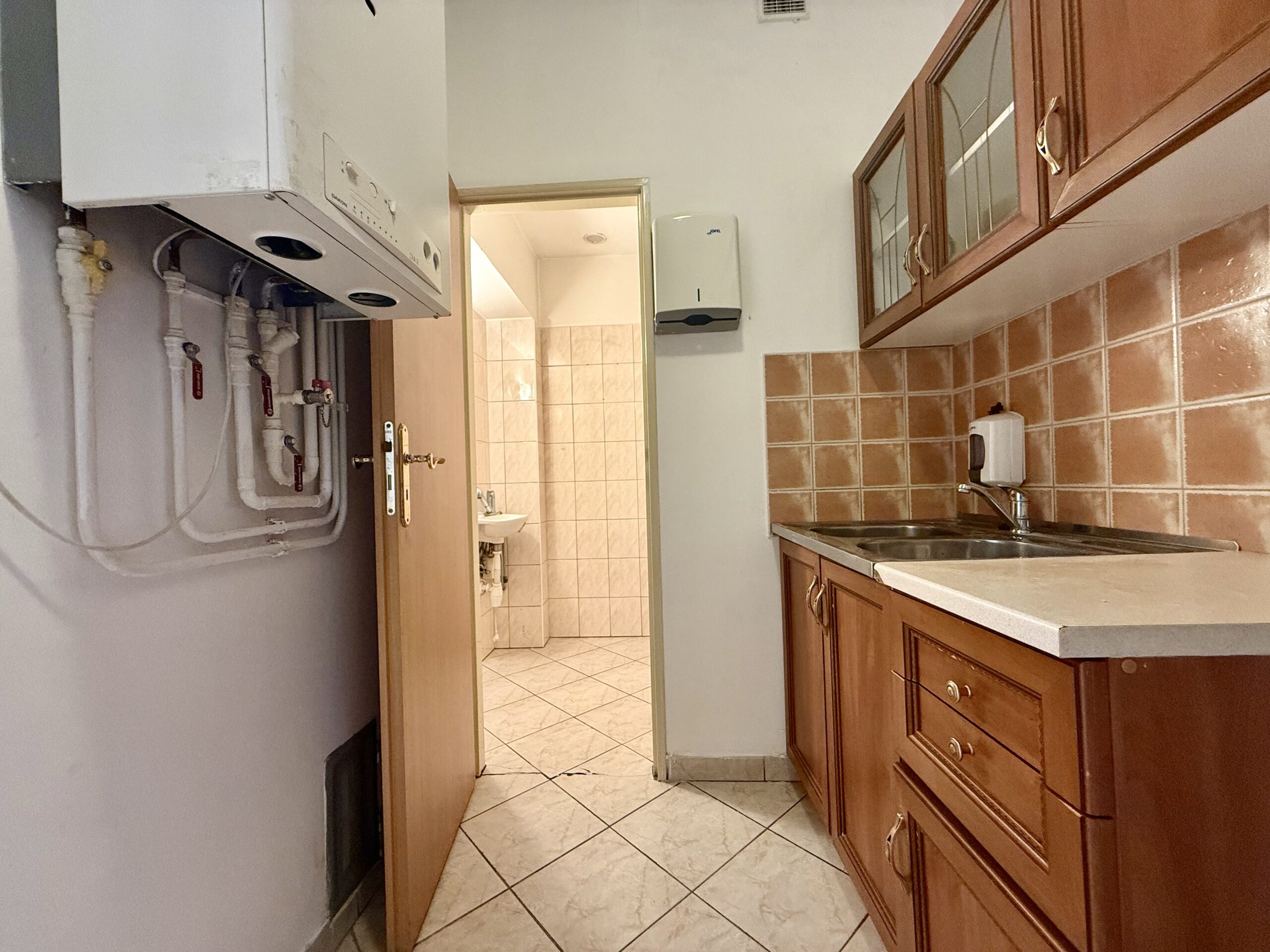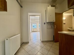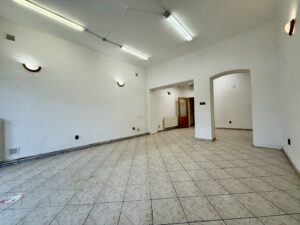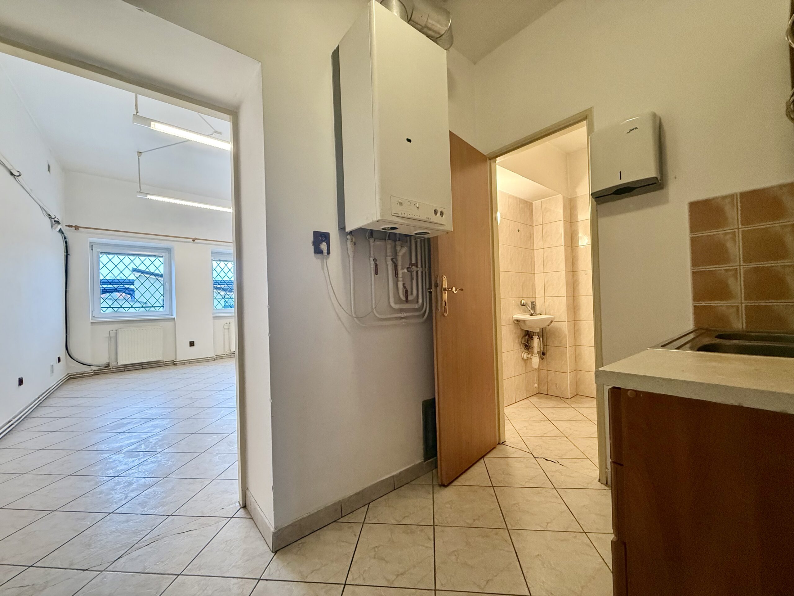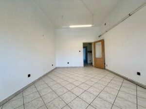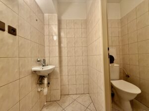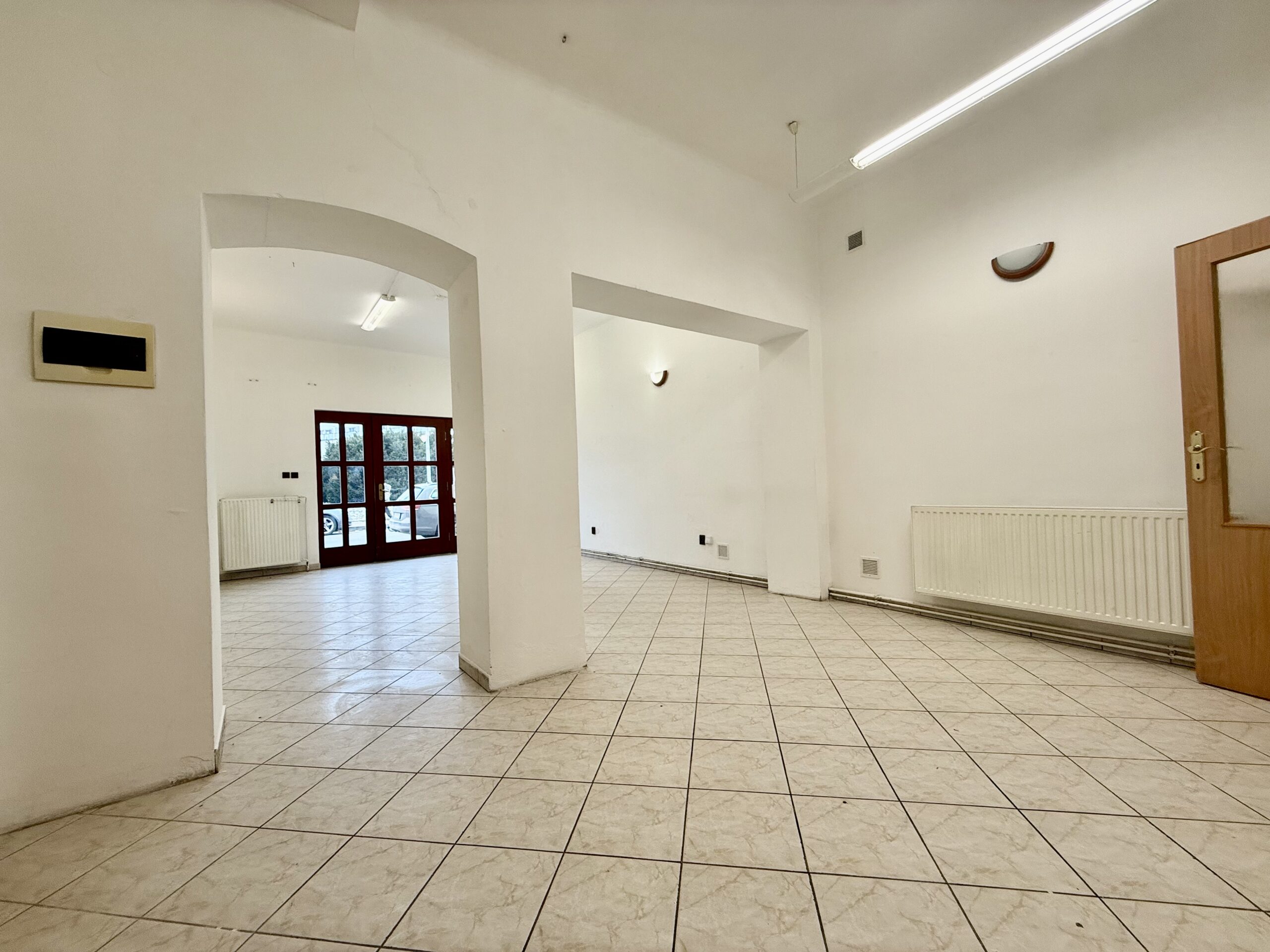 Prostor má praktické a přehledné dispoziční řešení. Hlavní místnost o výměře 38.5 m2 nabízí otevřený a světlý prostor vhodný pro provozovnu, kancelář nebo obchod. Na ni navazuje druhá samostatná místnost o velikosti 18 m2, kterou lze využít jako další prodejní část, kancelář, zázemí nebo sklad. Součástí prostoru je kuchyňka o výměře 5.7 m2 a sociální zázemí s WC a umyvadlem o celkové ploše 2.85 m2.