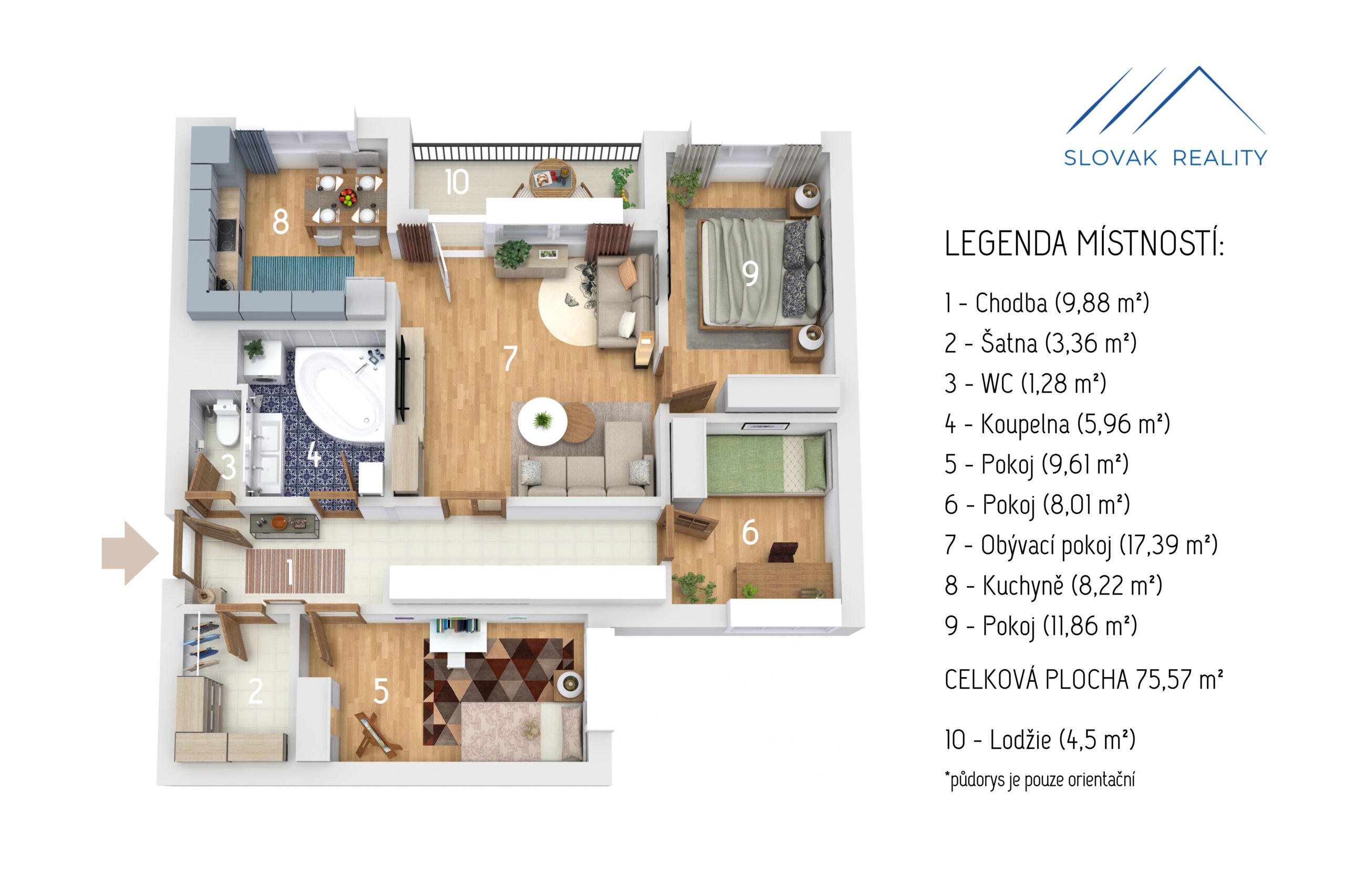 4+1 75 m² podlahové plochy