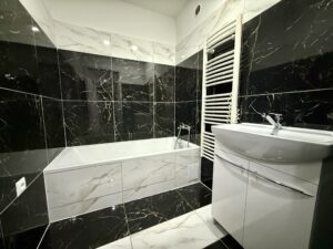 Byt je po kompletní rekonstrukci a nabízí kvalitní vybavení a světlý prostor. V celém bytě jsou nové podlahy, v pokojích plovoucí podlaha a v ostatních částech dlažba. Elektroinstalace je nově zhotovená. Stropy jsou snížené ze sádrokartonu a jsou osazené bodovými světly. Kuchyně je vybavená vestavěnými spotřebiči, konkrétně myčkou a lednicí s mrazákem. Koupelna je rovněž kompletně zrekonstruovaná. Velká plastová okna poskytují dostatek světla. Obytná část je orientovaná na jihovýchod a další pokoje na severovýchod.