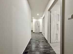 Byt se nachází v přízemí revitalizovaného domu v blízkosti centra. Před domem je možné parkování a hned u domu je umístěno dětské hřiště. V okolí se nachází škola i školka, což činí lokalitu velmi praktickou pro rodiny i jednotlivce, kteří hledají dostupnost služeb a klidné prostředí.